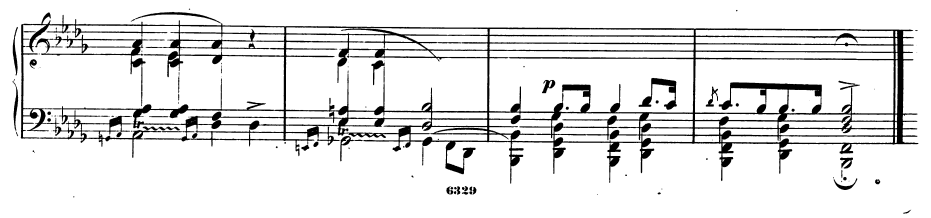 앞부분을 그대로 반복하여 무거운 화음들이 하강한 뒤 고요하게 악장이 끝난다.