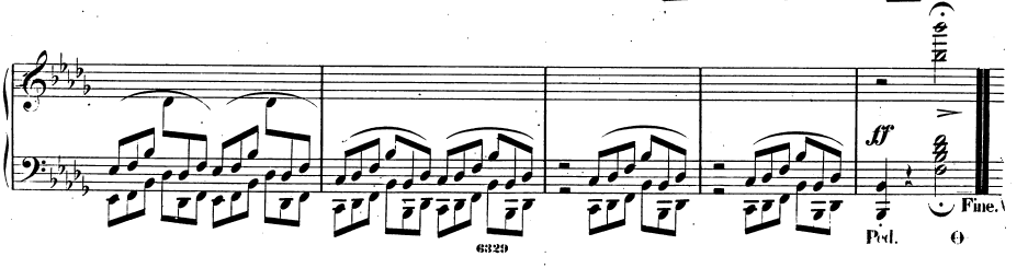 처음부터 끝까지 동일한 리듬이 반복되다 마지막에 포르티시모로 b♭단조 으뜸화음을 연주하며 마무리된다.