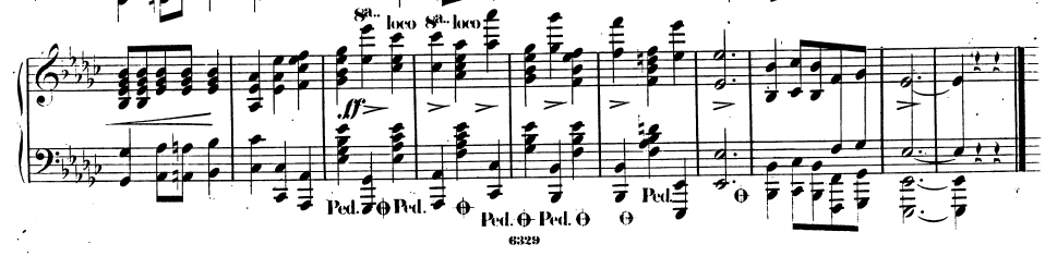 셈여림도 포르티시모로 세지고 왼손 반주는 옥타브 반주가 되었다.