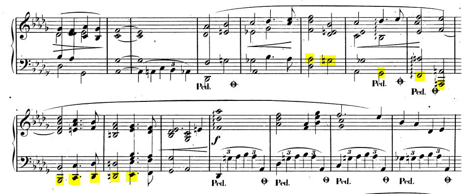 쇼팽은 반음계 진행을 경과구를 채우거나 긴장감을 높이는 일에 애용했다.