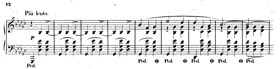 b♭단조와 D♭장조 사이에서 번갈아가며 전조된다.