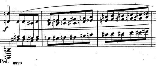 악장의 시작부분, 옥타브 병행의 선율을 빠르게 연주한다.